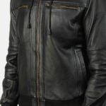 The smooth black leather is complemented by high-quality metal hardware, including a sturdy front zipper for easy wear. Whether you’re heading out for a night on the town or a weekend getaway, this jacket will keep you looking effortlessly cool. The sleek black leather adds a touch of edginess, making it perfect for both casual and formal occasions.