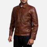 This Cathedral Brown Leather Bomber Jacket is easy to wear because of its Premium Quality Full Grain Leather and its has two side waist pockets outside to keep your hands warm in winter and one inside mobile pocket to keep your valuable items safe, Shirt Style Collar, YKK Zipper Closure, Open Hem Cuffs, features a classic bomber look with an asymmetrical zip closure, adding a touch of edginess to your outfit, making it suitable for various body types extend your wardrobe with exclusive styles.