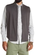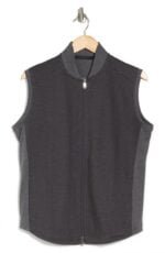 Double face jacquard adds a unique texture to this sleeveless vest with a front zip closure