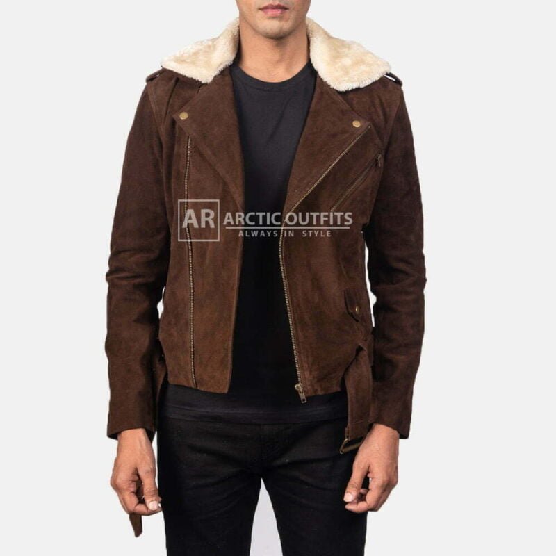 From: Furton Mocha Suede Leather Biker Jacket