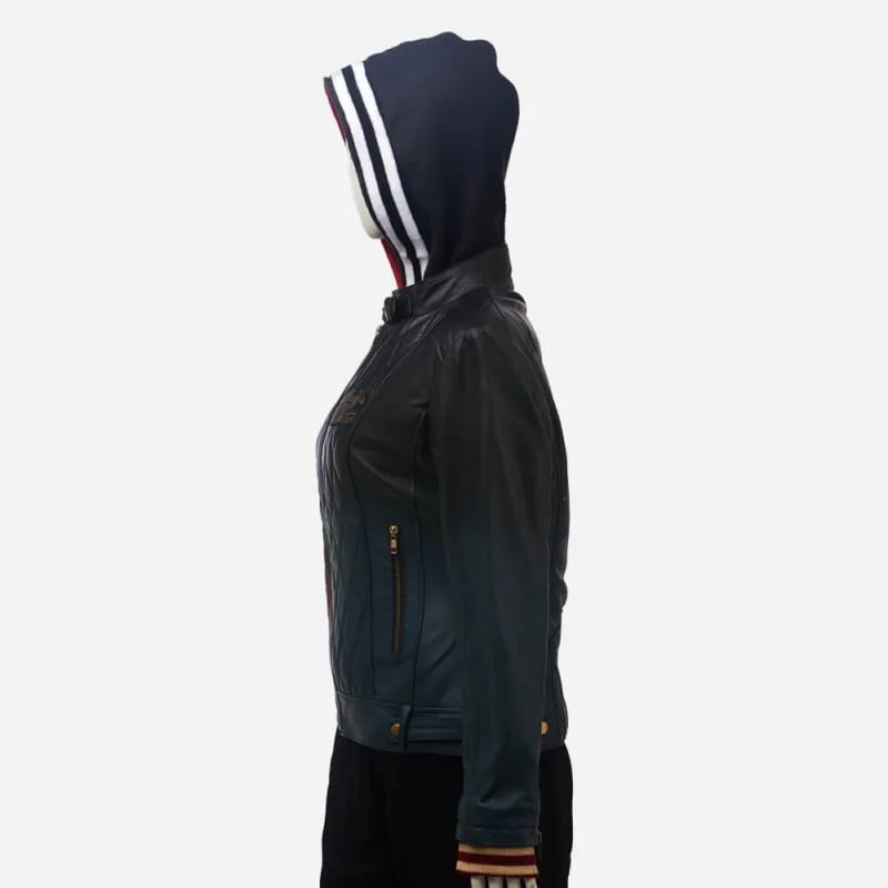 Harley Quinn Daddy’s Lil’ Monster Quilted Custom Made Leather Jacket With Hood