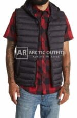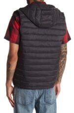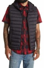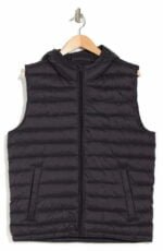 A hooded nylon puffer vest brings adventure-ready style to your wardrobe.
