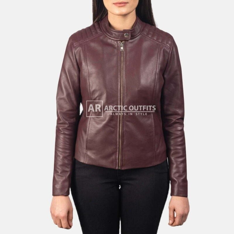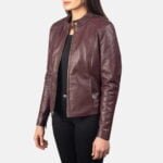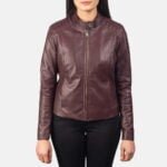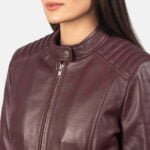 Kelsee Maroon Leather Biker Jacket
