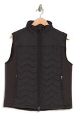 A quilted vest with a two way zip front closure is an idealy layering piece over any outfit to keep you feeling toasty warm on any brisk day.