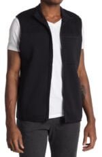 Ribbed knit trim adds a cozy comfort to these quilted vest with a front zip for effortless wear.