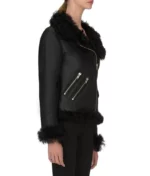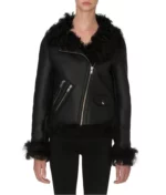 Neatly stitched, this dreamy and voguish jacket is made finely out of durable quality real leather and comes together with a soft and smooth viscose lining that makes the attire supremely comfortable, cozy, warm, and easy to flaunt. In a beautiful and shiny black color, this Biker Shearling Jacket has stylish fur collars, fur cuffs, and a waistline where each one of them adds to the uniqueness of this perfect outfit. With an asymmetrically closing zippered frontage, this jacket also has zippered pockets for your stuff and is perfectly slim-fitted to enable an enjoyable experience for you.