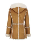 Womens Brown Suede Faux Exterior made out of suede leather, this utterly remarkable piece has an internal lining of shearling fur that makes it thoroughly comfortable to wear this piece with immense ease all day long. Refreshingly brown in color, the coat is attractive enough to pull as much of attention as it can. Featuring a hooded collar made out of fur, this contemporary outwear has open hem cuffs,